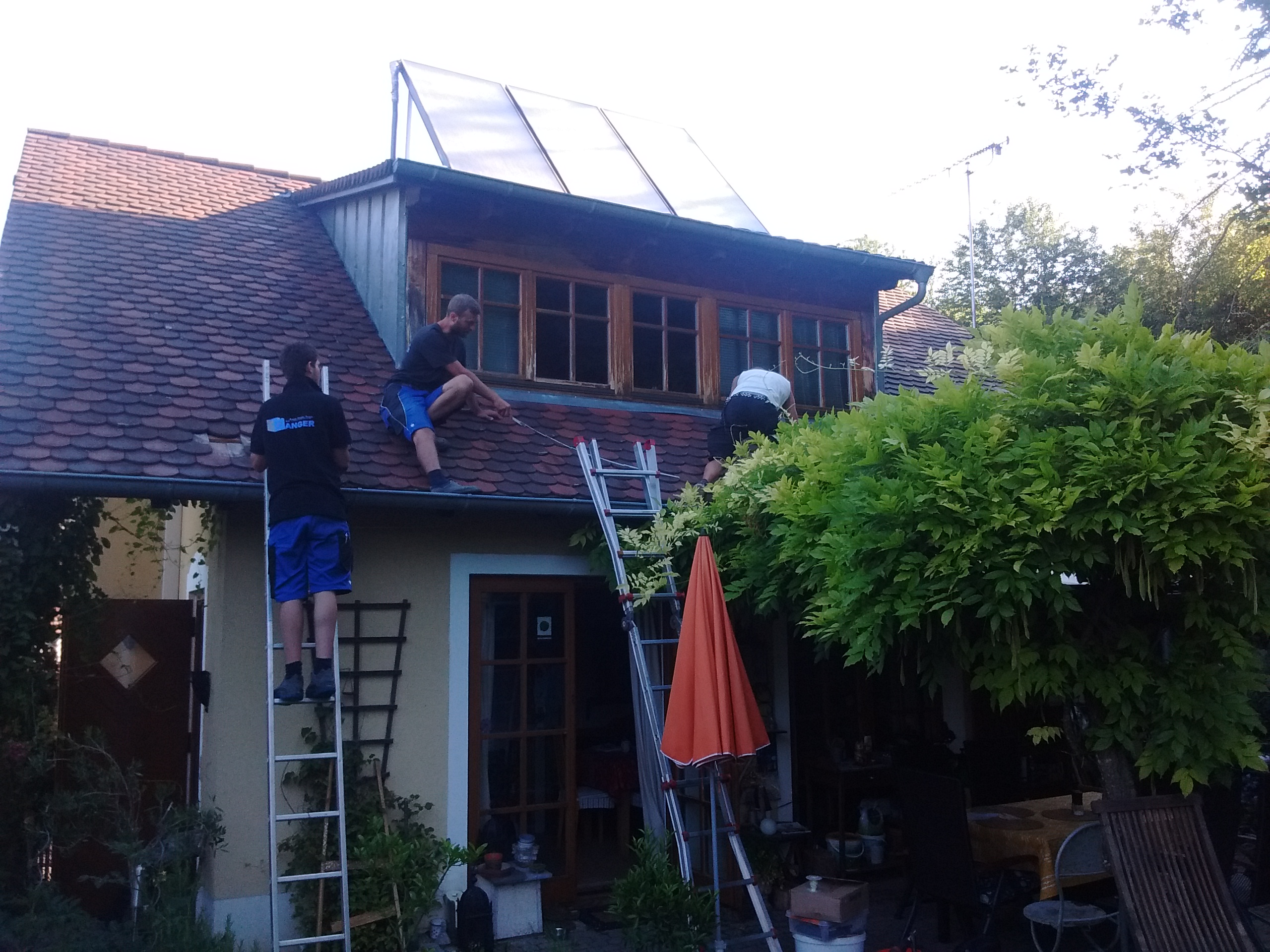 Zum Erfolg führte letzten Endes der Tipp eines Freundes, der Solarpaneel-Reinigungsfirma hat und mir die Firma EAT (Energie-Anlagen-Technik) von Michael Sänger in Müllheim-Hügelheim empfahl. Eineinhalb Tage Arbeit, 5000 Euro für eine komplette Anlage mit 2,1 Kilowatt pro Sonnenstunde - genau das Richtige für uns. Es wird unsere Nebenkosten-Zahllast in Zukunft beträchtlich vermindern, was angesichts möglicher Altersarmut nicht zu verachten ist.